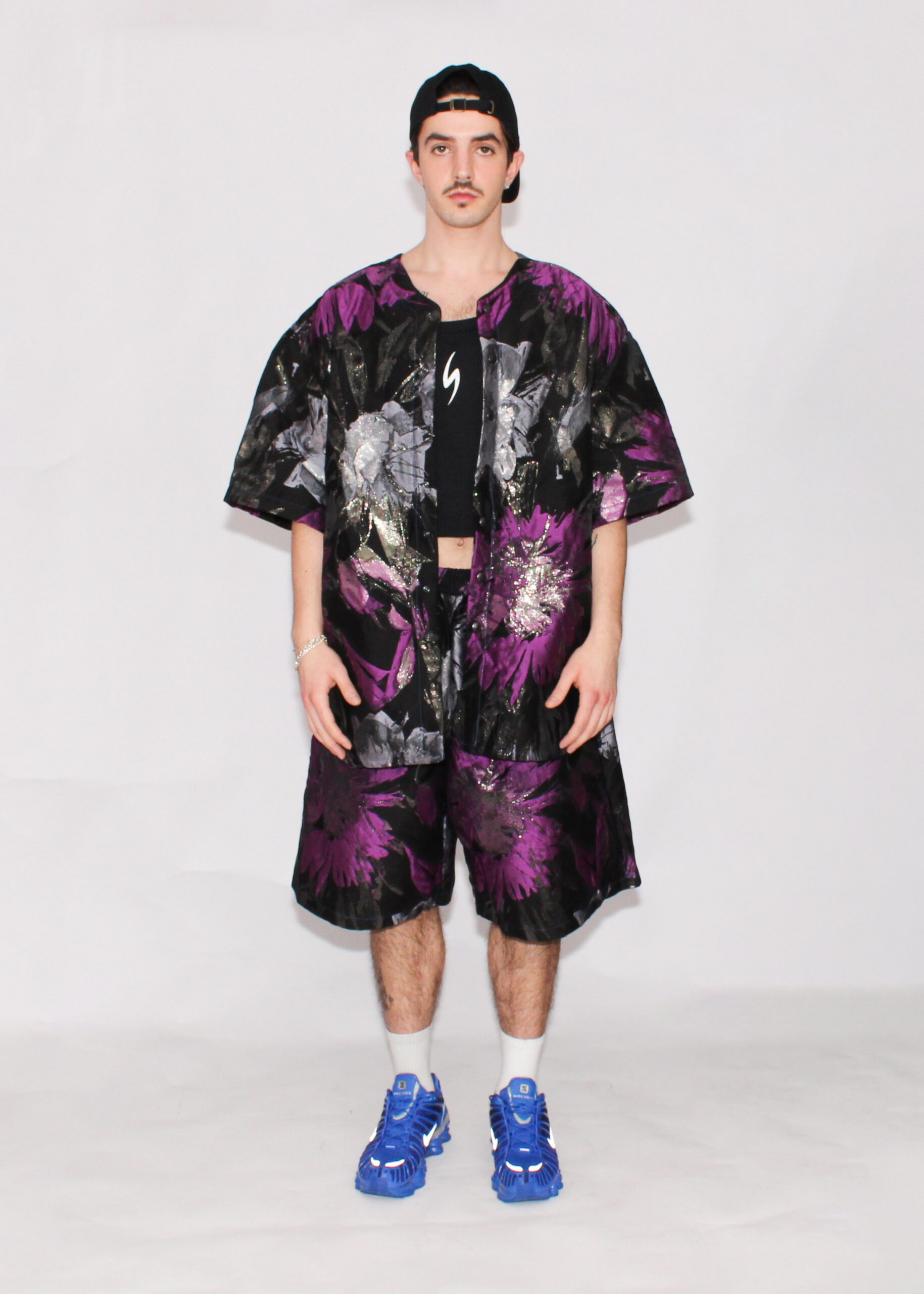 - Black snap buttons down front.