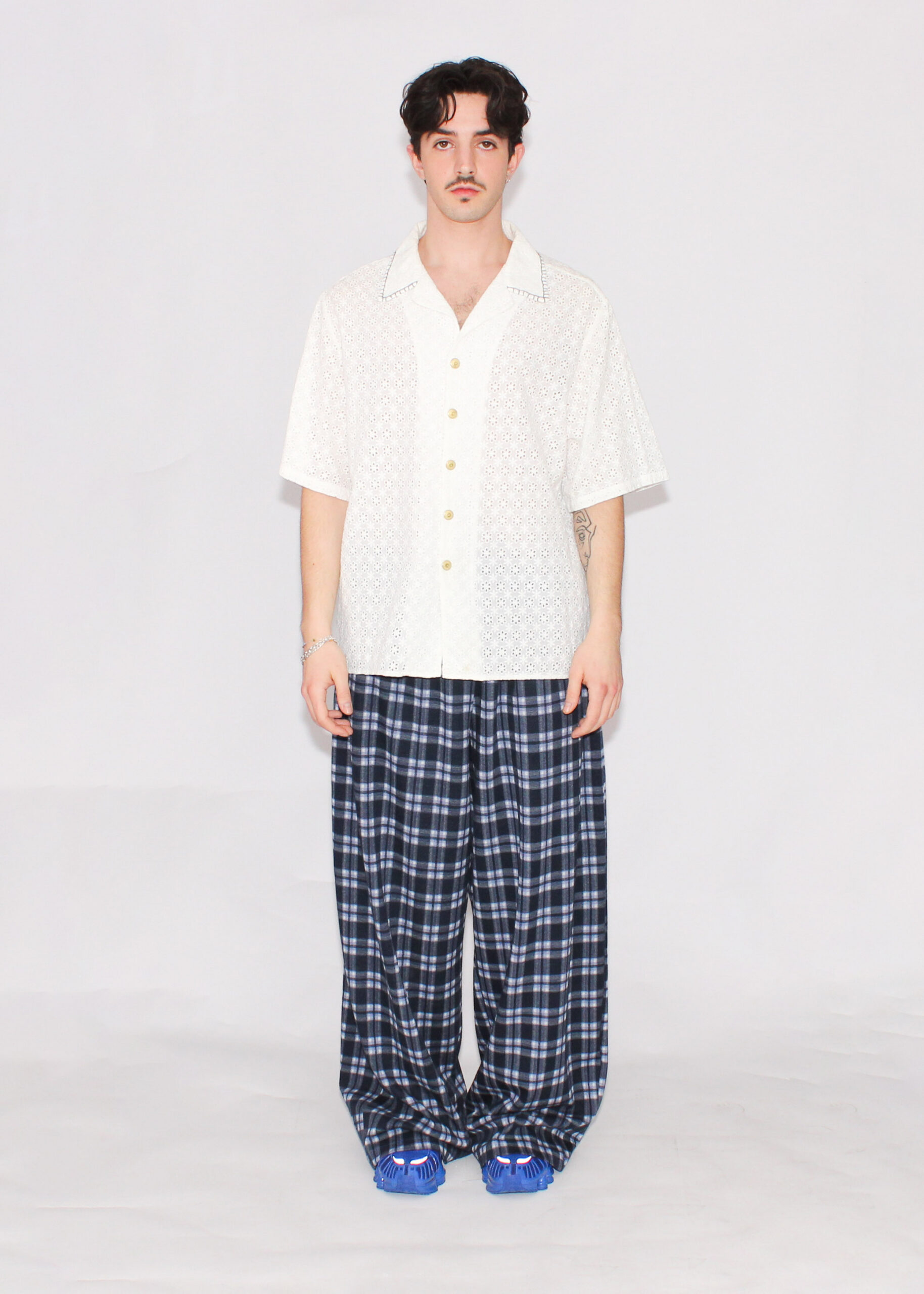 - Blue embroidered edge on collar.