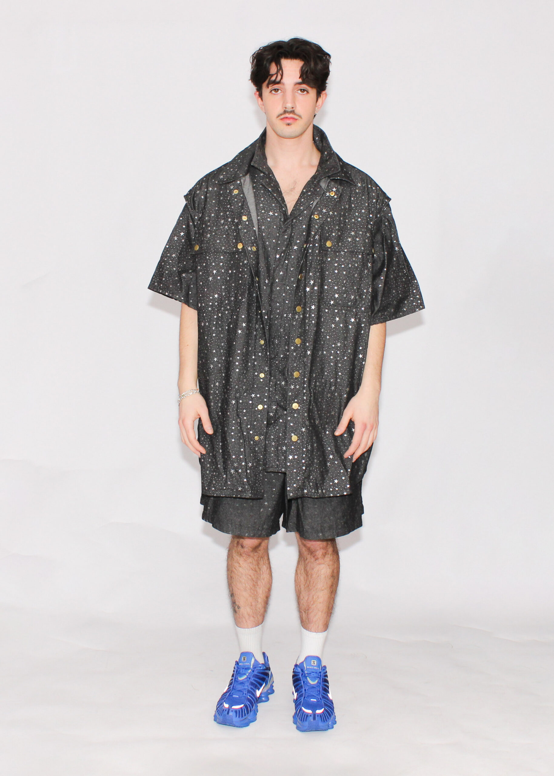 - Gold snap buttons down front.