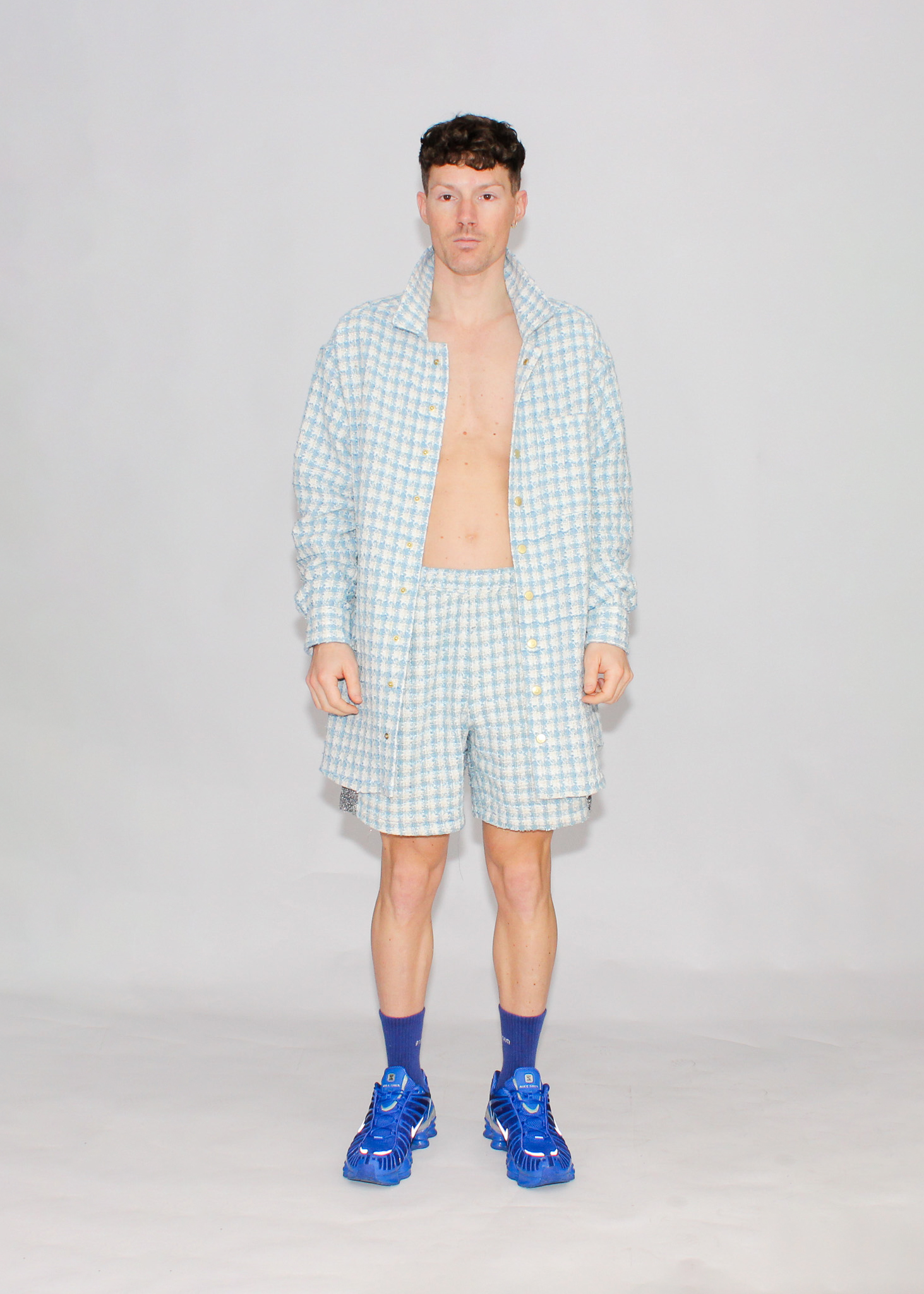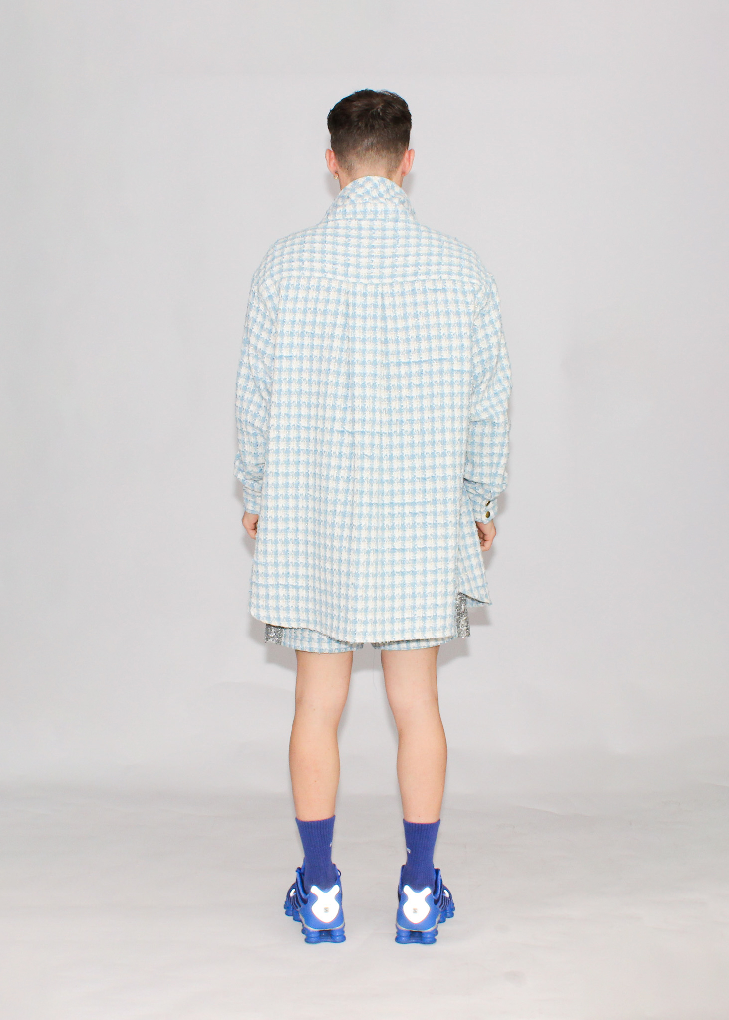 Longsleeve shirt in oversized fit and shimmering tweed fabric.